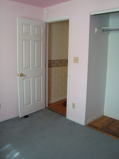 | Back hallway to garage, guest room, and bathroom This rug was nailed down to the floor; they apparently had problems with it moving? |