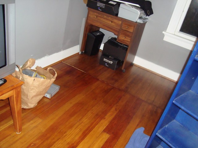| The wood floors before we had moved in all the way – they look great and we love the color! |