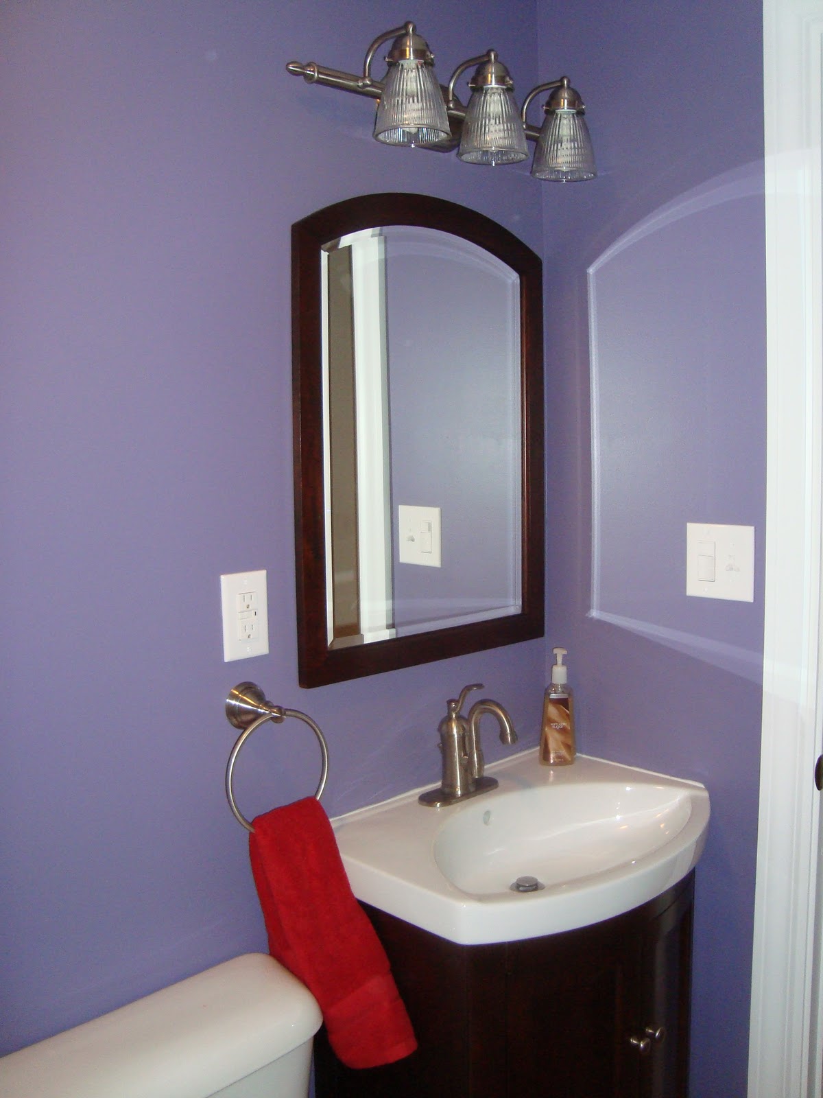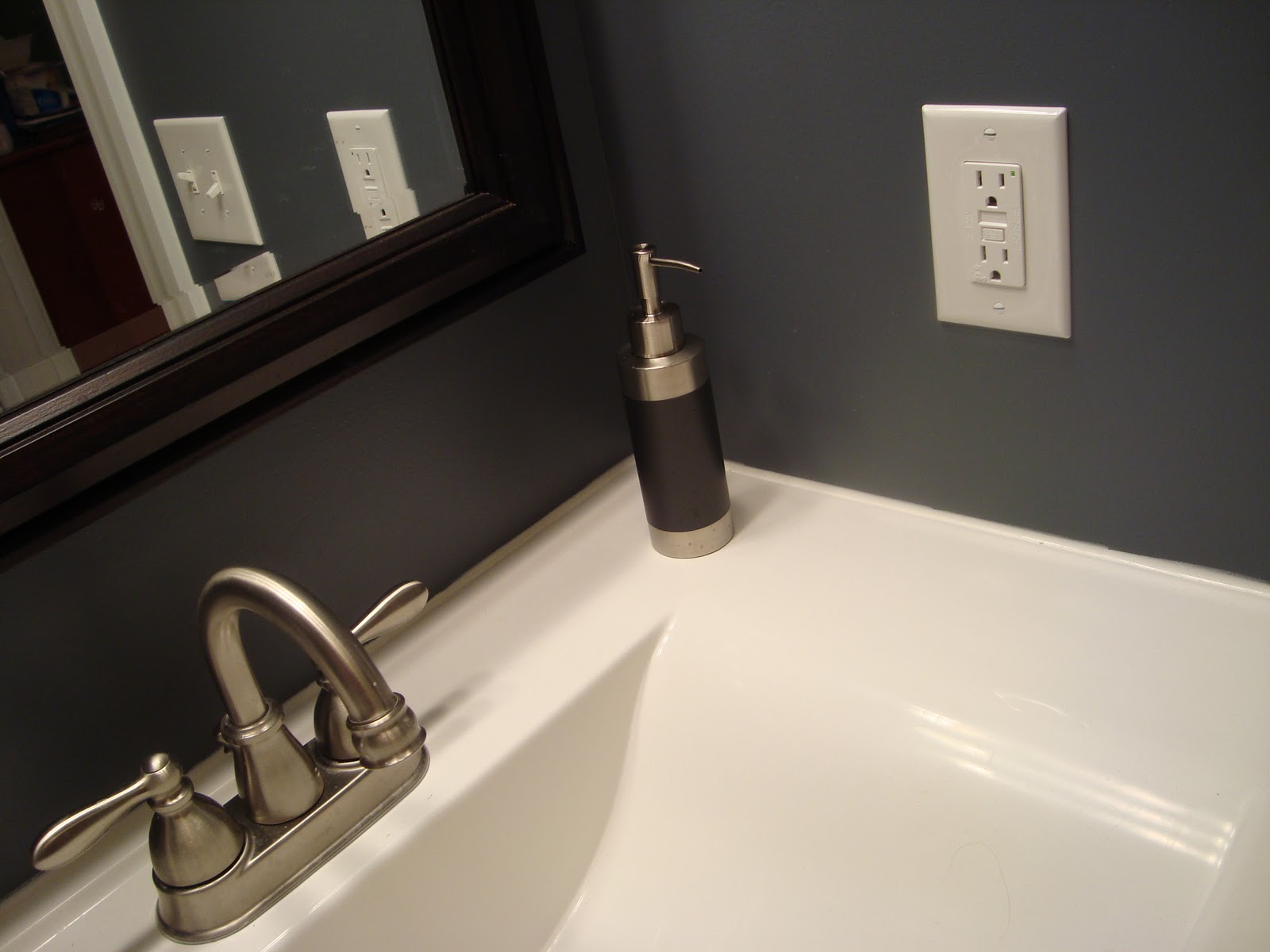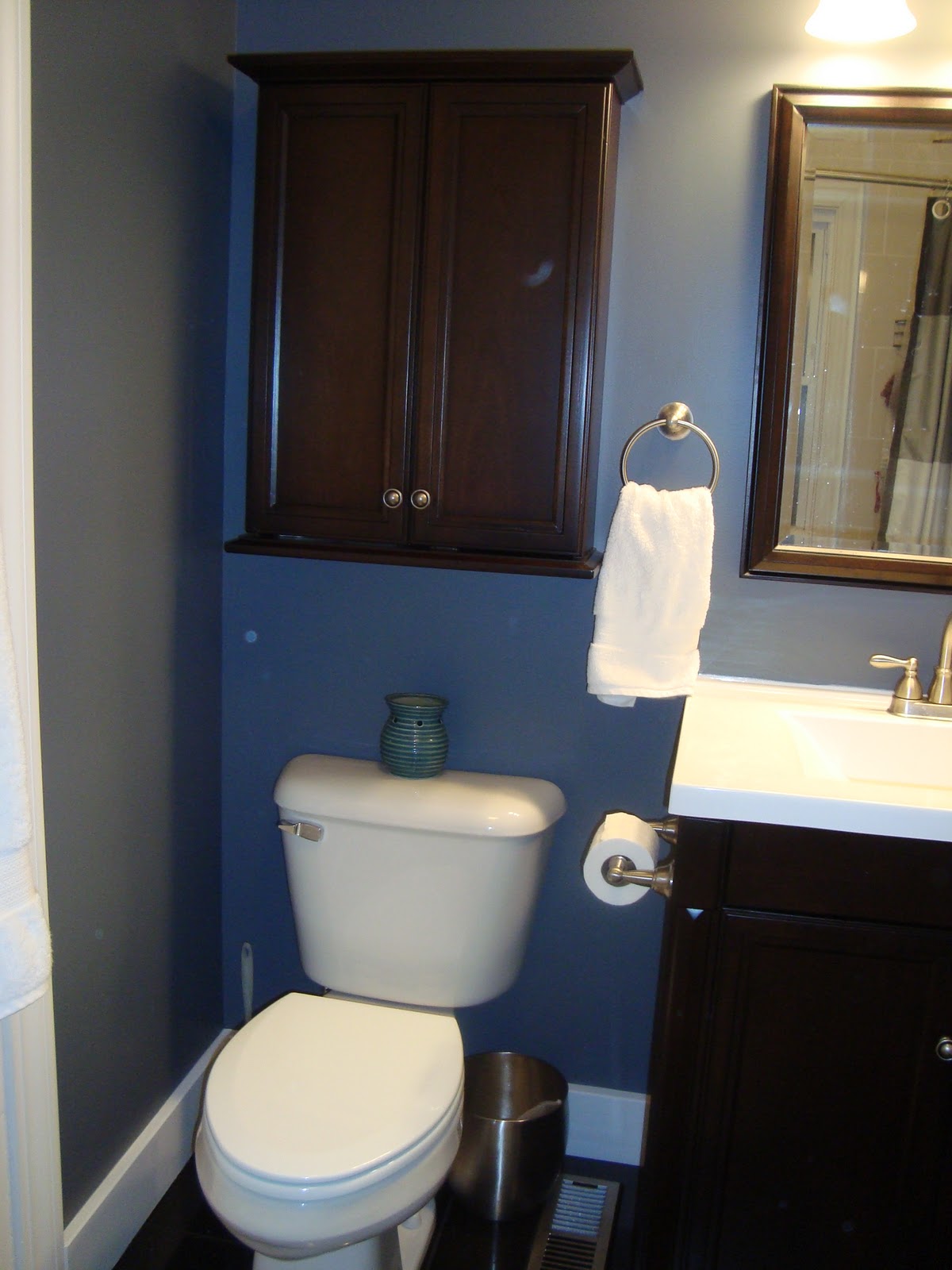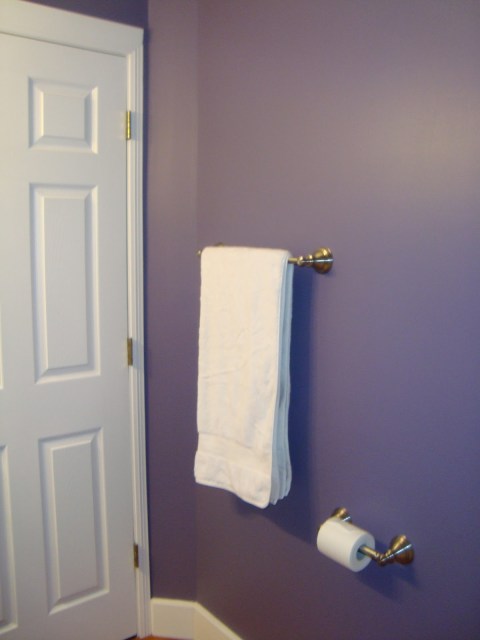 Our bathrooms are done. Finished. Completed. (Insert ridiculously smiley girl here – seriously, we can’t believe that we own this stuff and get to live here.) And I’m using the plural form of bathrooms because in our bathroom we’ve just been putting our toilet paper on the sink counter and our towels on door handles for a few weeks now. We still hadn’t purchased the towel rods, paper holder, medicine cabinet, etc. for either bathroom. We purchased it all and they’ve been hung! And, they did SUCH. A. WONDERFUL. JOB! We are so very ecstatic about the work they completed that neither of us can say enough good things about it – right down to the vent covers, door hinges, door stops, and matching, straight screws in the outlet covers! These guys are awesome at what they do!