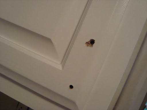 | MASSIVE HOLE (top one obviously!) … surprisingly, it doesn’t really show with the pull on the door? |