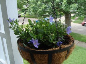 Replanted the hanging baskets. Flowers now grow from center and move outwards to the edges of the baskets, which should mean no more room for birds, I think.