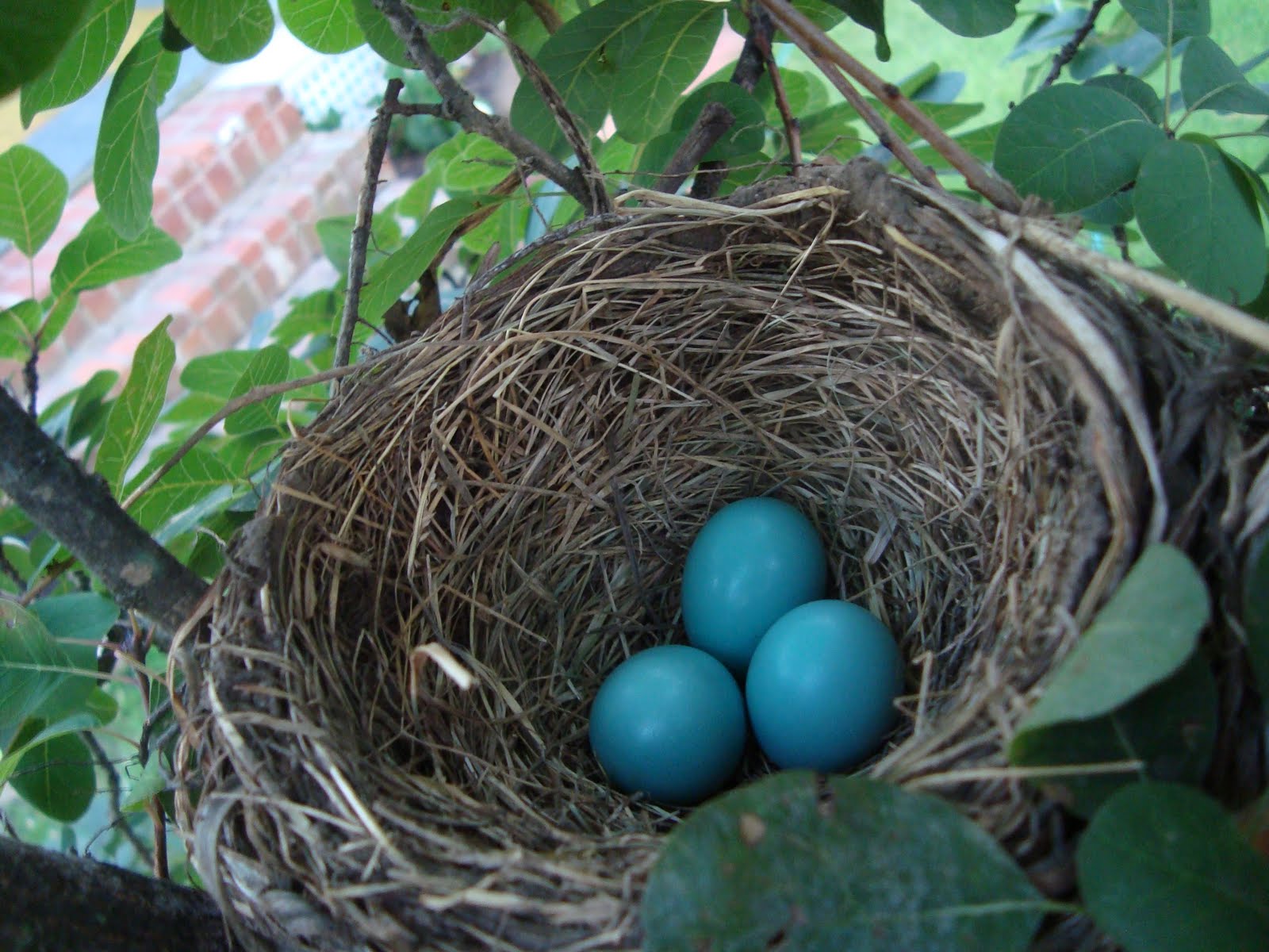 Also, we (Pat) have NEW bird friends. This time it’s robins – and they are NOT in my hanging baskets impeeding on the front porch. They set up camp in the Leaning Tree of Casa Sawyer in the front yard. New problem – these robins are WAY more territorial than the doves were. There are 3 eggs in the basket. (Also, funny side note, we have bunnies in the back yard too … I think Pat might be the wildlife whisperer. Or maybe our house just doesn’t look as scary as it did before?)