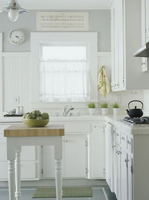 For starters, just so you know, as a pre-cursor to the kitchen details … I want my kitchen to look lovely. Something about the look of white marble countertops, with white cabinets, white subway tile backsplash, and white appliances … it makes me swoon. But, our kitchen is not quite airy and grand enough for me to have the previously described swooning, so we’re going with the white theme, but black countertops and stainless appliances. It’ll look good, I know. Originally, I was going to try and just paint … you saw the initial color swatches on the wall here – none of them were good. But, after much more deliberation, more painting samples of color on the walls, mixing colors with whites to tone them down, and a brief period of “I’m just going to paint it all white because I have no idea what else to do and can’t find the color that I see in my head” (ladies – we all know that this is true – you see things in your head and try to will them into reality) … I found my inspiration … so, ladies, keep making stuff up in your head, because sometimes it does work!