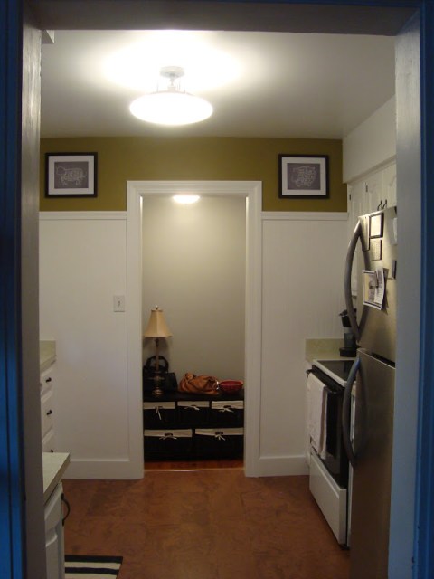 We painted the back hallway. Patrick spent 2 days preparing these walls for painting. Previous owners had wallpaper on the bottom half and the walls needed a lot of spackling and sanding. We did the work, painted the trim, and painted the walls. The paint didn’t stick.