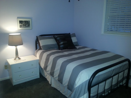 We also inherited a bed from my parents. My mom found this bed is some rough shape; and back in the day, spend a chunk of time restoring it from a rusty metal horror to a newly refinished state. And, while she had it painted green to match my brother’s old room; we primed it and repainted it an oil-rubbed bronze to take on more of an original metal look. And, it looks good.